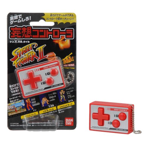 ゲーム機のコントローラをモチーフにしたキーチェーン玩具で、本体のスピーカーから流れる懐かしいゲームのBGMや効果音を聞きながら、十字キーやボタンを操作して、頭の中でゲーム画面を“妄想”しながらゲームを楽しむ商品です。
