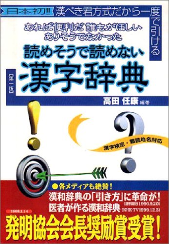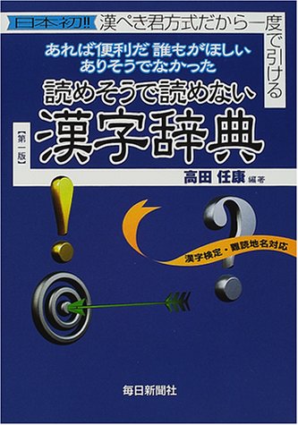 読めそうで読めない漢字辞典―日本初!!漢ぺき君方式発売日:2001年01月 著者:高田 任康 単行本:461ページ サンルイワードバンク 内容(「BOOK」データベースより) 本書はいままでとは異なり、「漢ぺき君」方式という新しい引き方を採用。慣れればほとんどの漢字は索引をたよらずに国語辞典のように一度で引くことができる。普段新聞、雑誌などに出てくる読めそうで読めない熟語(約1万)と難読地名(約8千)を収載し、その読み方を表記した。 |
