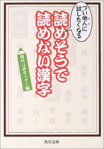 つい他人(ひと)に試したくなるもっと読めそうで読めない漢字 (角川文庫)発売日:2003年12月 文庫:158ページ 角川書店 出版社/著者からの内容紹介 読めますか? 書けますか? 遊んで身につく漢字生活 「つい他人に試したくなる読めそうで読めない漢字」の第2弾。「薄くて安く遊んで楽しめる」を継承し、読めない漢字に、さらに書けそうで書けない漢字や日常の漢字の意外な知識を紹介する、遊んで得する本。 読めたらすごい!書けたらすごい!! |